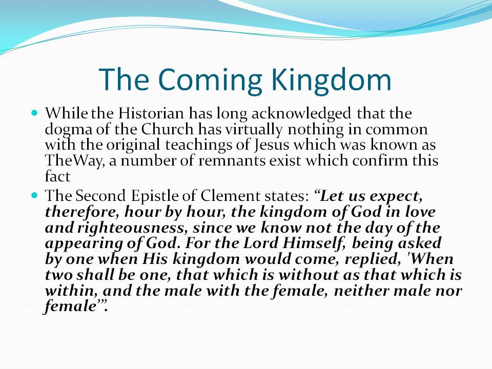 As predicted, the ministers of Satan have succeeded in altering the teachings of my brother Yeshua, and continue to lead many into the abyss of darkness.   But have no fear my brothers and sisters, for the teachings of TheWay has been restored so that you might be able to overcome the darkness, and enter the Kingdom of Light within you (Luke 17:20-21).